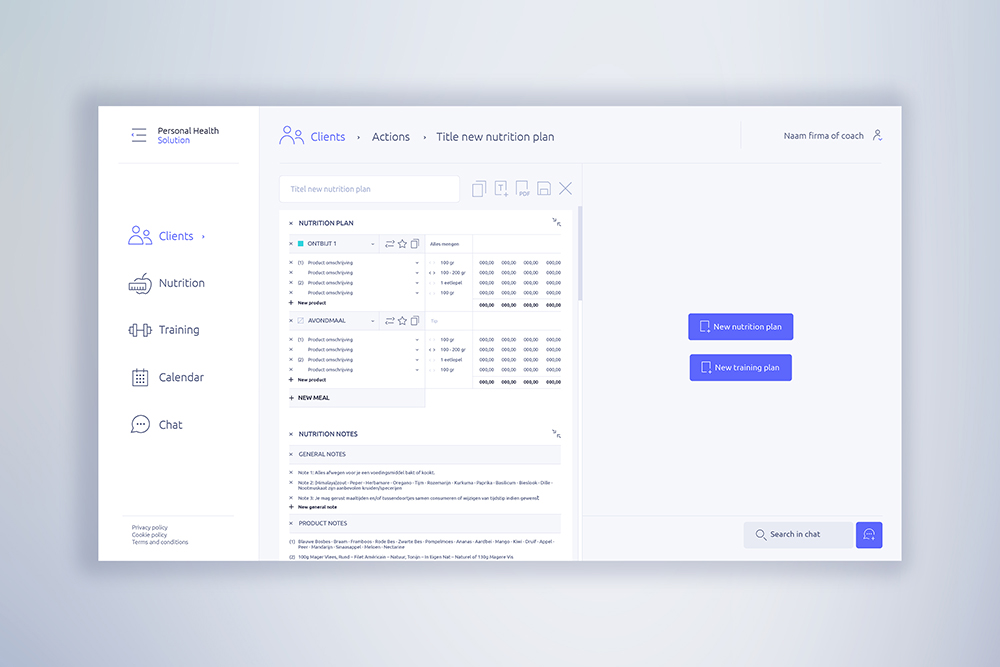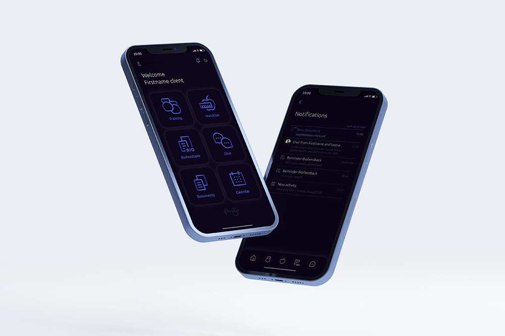 Vanaf 2020 evolueerde dit naar de ontwikkeling van software en later ook een app. We stonden in voor het design, maar dachten ook actief mee na over structuur en gebruikservaring. In 2021 werd een klantgerichte app gelanceerd, die de interactie tussen coach en klant vereenvoudigde en alle informatie op één plek samenbracht. Van trainingen, kalender functie, video data tot voeding en nog zoveel meer, wij ontwierpen de volledige visuele look.